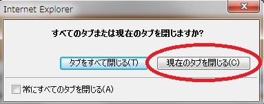 Internet Explorerをご使用の場合 戻るとき右端上の×をクリックすると以下のメッセージが表示されますので、右側の「現在のタブを閉じる」をクリックします。
